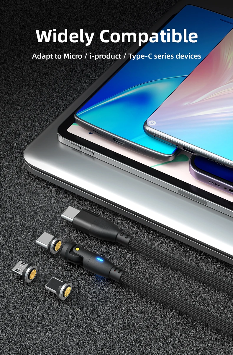 AUFU 540 Rotate 5A Magnetic USB C Cable PD 100W Fast Charging for MacBook Type C Cable For Xiaomi POCO Realme Samsung S23 Huawei Data Charge Cable PD 27W for iPhone 14 13 12 11 XR
